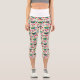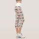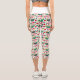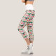 High-waisted capris featuring a lively Christmas pattern with small trees, stars, ornaments, gifts, and candy canes. A fun seasonal design that brings a festive holiday look to everyday winter wear.