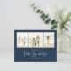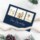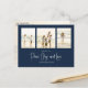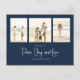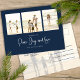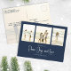 Classic and Simple yet elegant navy blue snowflake pattern, this design is completely editable. With calligraphy script. This festive, elegant, and unique multi-photo Christmas photo card template is a 4 photo budget postcard layout. Celebrate with this unique holiday and festive Christmas card. This design features a Christmas holiday navy blue pattern, navy blue silver snowflakes, winter holiday elegant simple minimalist, fancy calligraphy script font, peace joy love quote saying, whimsical modern typography,1 photo family picture template, holiday Christmas photo greeting card, minimal simple pattern style, one 1 photo budget postcard