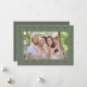 An elegant snowflake border. This classic Christmas photo card template features a 1 photo layout. A stylish festive design with a green background. A simple vintage and yet modern style to wish Happy Holidays to your friends and family. This design features Christmas holiday photo 1 one, snowflake elegant red green pattern, modern simple classic family rustic, family picture clean trendy, peace joy love script typography, modern elegant simple trendy, peace and joy traditional, modern calligraphy script font, simple and minimal family photo, elegant stylish holiday greeting card.