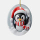 Holiday Penguin Waving and Bursting Out Ceramic Tree Decoration