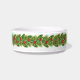 This medium size pet bowl is shown with a festive holiday print of garland in fir and holly with red berries.