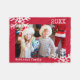 Custom holiday photo blanket with a red background and 2 distressed snowflakes.