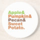 Apple & Pumpkin & Pecan & Sweet Potato.