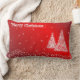 Lumbar style pillow shown in red with a festive Christmas tree print. Customise this item or buy as is.