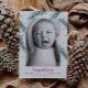 Whimsical birth announcement template card featuring festive illustration of pine tree leaves with red berries. There are 4 pictures of your newborn that can be added on this card (front and back). Perfect Christmas card to announce the arrival of your new baby with his/her birth stats. Great for both baby boy and girl.