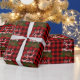 Holiday party humour - eat drink merry - red and black plaid with pine-cone accent