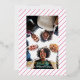 Send holiday greetings with this minimalist pink and white stripes gift wrap inspired, photo greeting card. The "Merry Christmas" or custom holiday greeting text is in real foil. The option to change the foil from silver to rose gold or gold is available. The back of the card is the full striped design that is on the front frame.