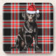 Holiday Plaid Chocolate Labrador Santa Dog Coaster
