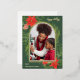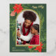 Rustic green real foil Christmas greeting includes a painted holiday swag with beautiful poinsettias and greenery, and a centre photo arch with simple script. The back is a sweet editable holiday message with return address!