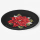 Holiday paper plate is shown with a festive Christmas poinsettia print.