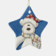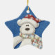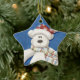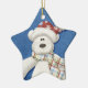 A polar bear with a plaid scarf and red and white snowflake stocking cap ornament.