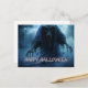 A gloomy, floating black ghost with an ethereal form, surrounded by dense clouds of mist, hovering menacingly above the ground in a dark, hellish landscape with an eerie atmosphere.