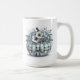 Holiday coffee mug is shown with a cute wintery blue plaid pumpkin floral print.