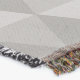 A quality printed throw has its advantages. This is a much finer weave throw than its loopier cousins, and though lighter, it is worth the investment for custom room accessorizing. The back is much prettier than the typical brown, and the fringe on the long sides very vivid, the selvage nicely done. Before photographing, I washed the throw in cold water, delicate, with a thicker woven throw the same size. On tumble dry low, this throw was dry in half the time as the other. This is a very practical quality if you use throws for furniture covers or to wrap up in frequently. The sleekness of the fabric makes it a great layer for accenting or protecting without the feeling of sitting on too much stuff. Perfect for napping or when you feel a light chill coming on. The color printing is beautiful and on this fabric, matched the design and color of my Photoshop image. This is an advantage for blending room fabrics and colors. The fringe on the short sides prints the colors from the design image and therefore varies from the side fringe. I streaked a white fractal line through the plaid pattern to give the illusion of weaving. This printed as crisp as an illusory thread, and put some white in the short side fringe, showing another advantage of print vs loomed- for artistic purposes, line lines, detail, and color integrity can be planned and preserved. My loomed throws have color limitations and more of a needlepoint texture. Print throws reproduce an exact image. The throw felt a little stiff straight out of the package, but this went away in the first delicate wash. Of course I searched the wash water for ink or bleeding and there was none.