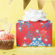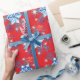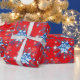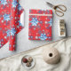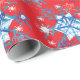 Holiday red and blue snowflakes and stars wrapping paper