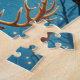 This game puzzle is shown with an art print of a festive reindeer during Christmas holiday.