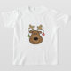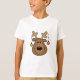 A reindeer with ball ornaments hanging from his antlers on holiday T-shirts, mugs, cards, stickers, holiday tote bags, sweatshirts, and other holiday clothing and gifts.