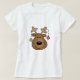 A reindeer with ball ornaments hanging from his antlers on holiday T-shirts, mugs, cards, stickers, holiday tote bags, sweatshirts, and other holiday clothing and gifts.