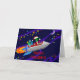 Customisable Holiday rocket greeting card with alien and robot.