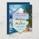 A fun beach scene about Christmas - New Year in summer time to family & friends wishes them who are merry Christmas - New-year who celebrate in winter .