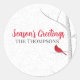 Holiday Season's Greeting Red Cardinal Birch Tree Classic Round Sticker