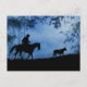 Season's Greeting country western style with this cool postcard of a cowboy and his horse driving a lone steer at night with stars. Cowboy church for sure, the great outdoors.
