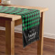 Holiday table runner is shown with a green buffalo plaid.