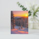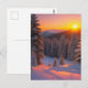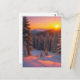 This atmospheric Christmas or holiday postcard features a stunning sunset snow scene.