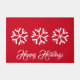 Holiday doormat is shown in red with a cute Christmas snowflakes print.