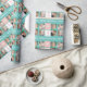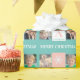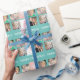This Christmas gift wrapping paper features a 4 photo collage on a teal background. The design is accented with a snowflake, a custom monogram and the text "Merry Christmas". Personalised your gifts this season with this festive and fun wrapping paper.