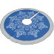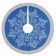 Holiday tree skirt shown in a Sapphire colour with a snowflake print and coordinating border colour.