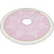 Holiday tree skirt shown in a pinot noir pink colour with a snowflake print and coordinating border colour in ivory and matte gold colour.