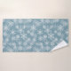 This holiday bath towel is shown in a festive holiday Christmas snowflakes print.