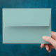 Card envelope is shown in a dusty teal colour with a winter snowflakes print design on the inside.