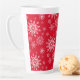 This large size latte mug is shown with a festive Christmas holiday snowflakes print.