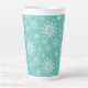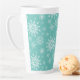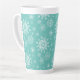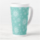 This large size latte mug is shown with a festive Christmas holiday snowflakes print.