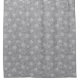 Shower curtain is shown in a silver grey colour with a festive holiday pinecones and snowflakes print.