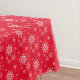 Holiday tablecloth is shown in a festive winter snowflakes print.