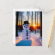 This holiday postcard features a handsome snowman in the woods at sunset.
