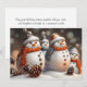 Celebrate the holiday season with these charming snowmen, adorned with pinecones, glitter, and gingerbread accents. The card captures the essence of a winter wonderland, making it perfect for winter sports and holiday-themed stores.