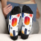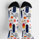 Celebrate the festive season in style with these modern holiday socks, showcasing elegant navy and gold feather-inspired patterns. Accented with vibrant red and orange hues, this design brings a sophisticated and artistic touch to your winter wardrobe. Perfect as a Christmas gift or for adding flair to seasonal outfits, these socks are both stylish and festive.