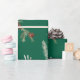 A watercolor-painted pattern of spruce and pine branches with cones, red berries and winter greenery on this classic Christmas holiday wrapping paper on a rich forest green colour background.
