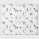 A watercolor-painted pattern of spruce and pine branches with cones, red berries and winter greenery on this classic Christmas holiday wrapping paper on a plain white background.