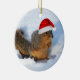 An adorable squirrel wearing a Santa's hat sitting in the snow