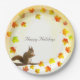 Cute holiday squirrel & Fall leaves Thanksgiving Party Plate. Text can be personalised. Ideal for Autumn season.