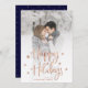 This simple and stylish Christmas photo card features modern faux rose gold handwritten script that says "Happy Holidays", and lots of elegant stars, with your favourite personal photo covering the entire front of the card.