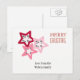 A modern colourful design featuring shades of red and pink holiday stars. The wording says 'Merry Christmas'. Add your name to personalise this cute design.