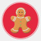Holiday sticker is shown in a red colour background with a cute gingerbread person print.