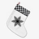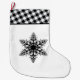 This holiday stocking is shown in a country style Christmas look with a gingham plaid print and a Black snowflake print.