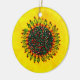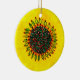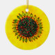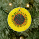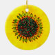 Based on an original watercolor painting by Donna Kerr. Festive yellow sunflower with red & green flecks in its large round centre surrounded by holly leaves & berries. This ceramic ornament will brighten any tree!